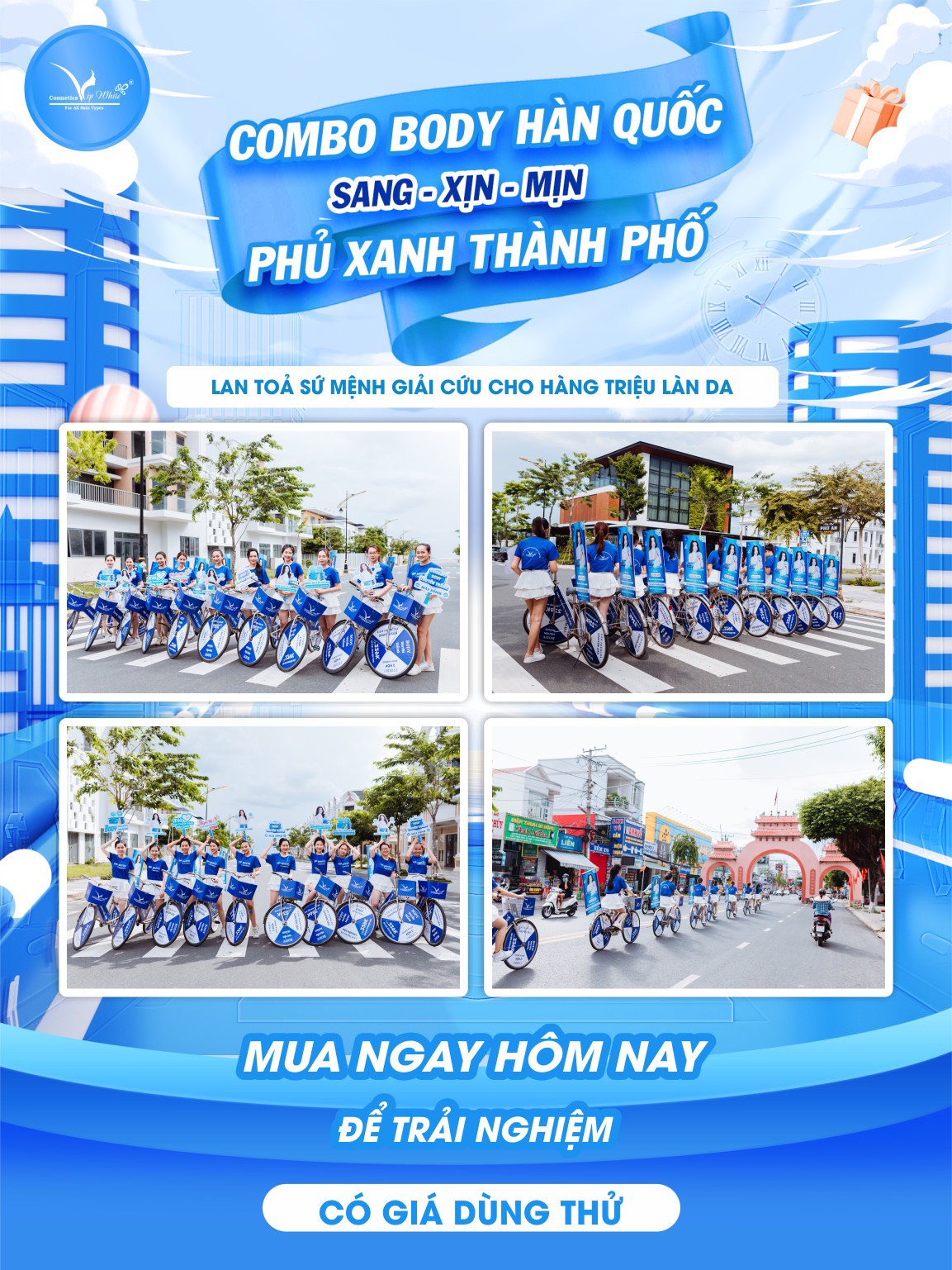 - Bước 3: kem Body dưỡng trắng (xanh nhạt) thành phần đặc biệt có chứa retinol, tinh dầu hạt xương rồng giúp da cấp ẩm trẻ hóa nhanh, phục hồi làn da căng bóng trắng khỏe thích hợp sử dụng vào buổi chiều hoặc tối.