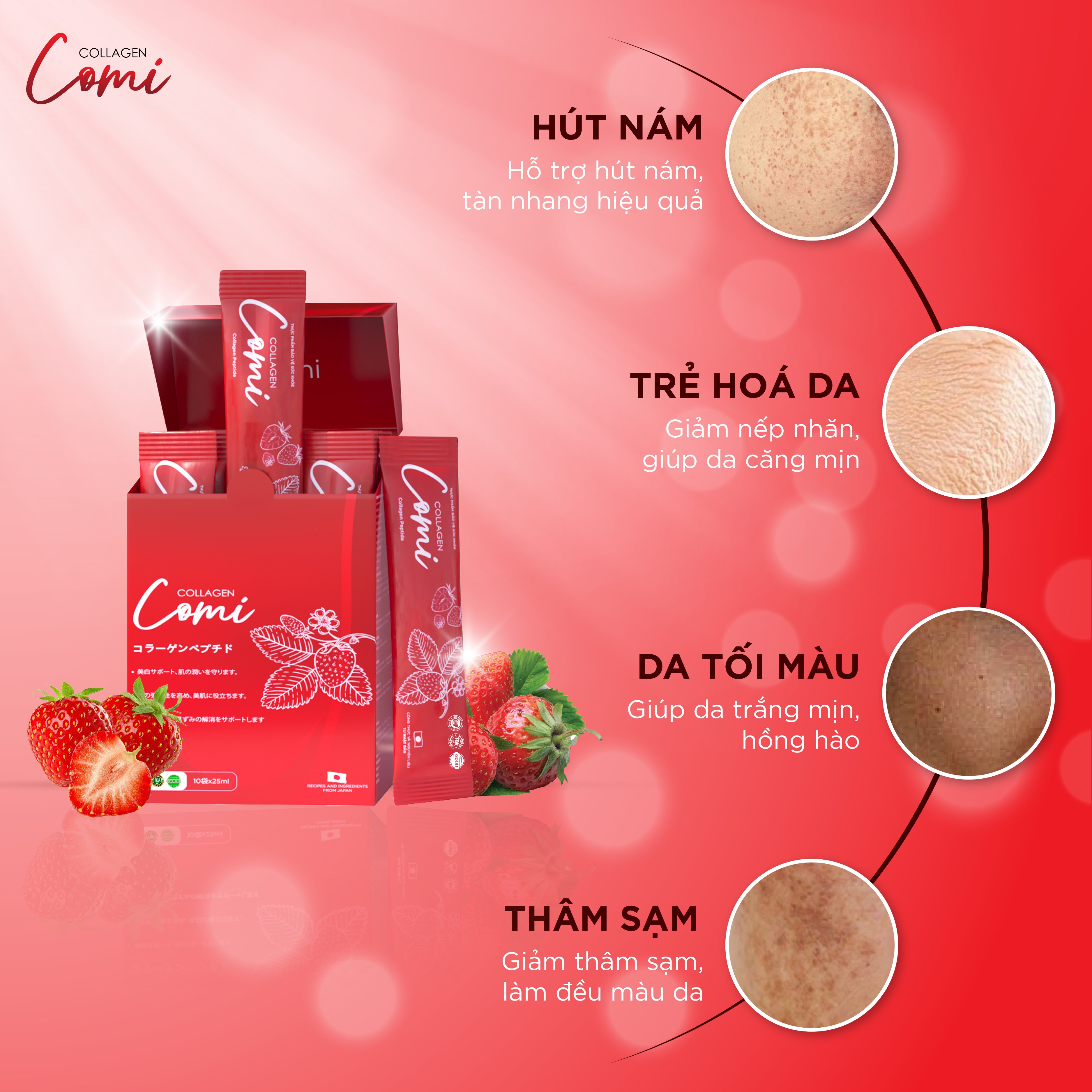 Hiện nay, collagen comi đang được săn đón và được hàng triệu khách hàng trong và ngoài nước sử dụng. Ứng dụng công nghệ tách chiết thủy phân collagen peptit từ Nhật Bản, collagen comi giúp bạn có một làn da tươi trẻ, trắng sáng và loại bỏ tận gốc sạm nám tàn nhang